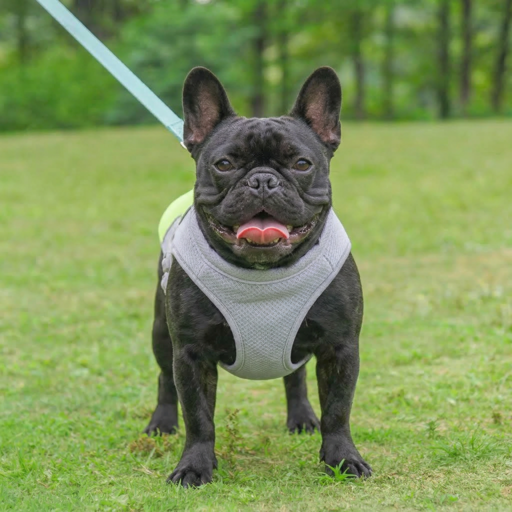 Medical Note: For French Bulldogs with BOAS, a well-fitted harness is non-negotiable. A collar presses on the trachea; a harness distributes pressure across the chest. This vest allows you to maintain that critical safety equipment while adding cooling.